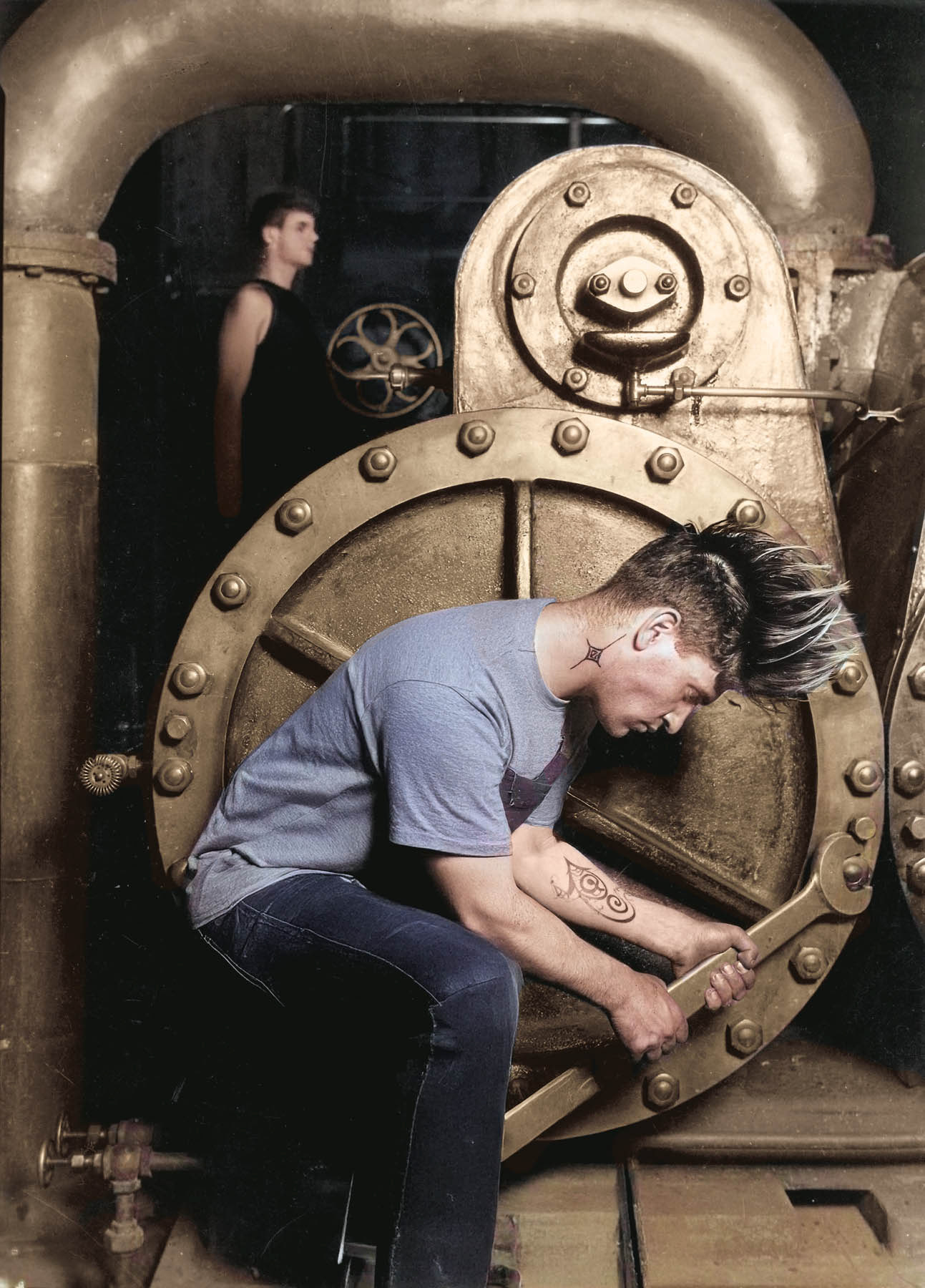 2024. When we look at an image, we grasp what is essential. As Rudolf Arnheim notes, “visual perception does not operate with the mechanical fidelity of a camera, which records everything impartially.” We do not observe every detail; instead, we retain a general schema composed of dominant features. These few structural elements are enough for an object to appear to us as a coherent whole. Arnheim also points out that memory influences perception: the traces of familiar forms act as a reference, meaning that what we see is not limited to the present moment but is connected to countless previous experiences. Thus, different images with similar forms or structures may be perceived as related entities. When this occurs in photography, the phenomenon intensifies. Students, amateurs, and professionals—trained within the history of the discipline—consciously or unconsciously produce images that repeat established patterns, generating almost endless variations on those representations. The project Industrial Resonances explores this terrain by creating reinterpretations of historical photographs through the transformation of some of their elements, using retouching tools and artificial intelligence. The aim is to test the extent to which formal similarities provoke inevitable associations with shared photographic references. The reiteration of certain essential components, replicated time and again, underpins the notion of a visual production over time that is almost mimetic.